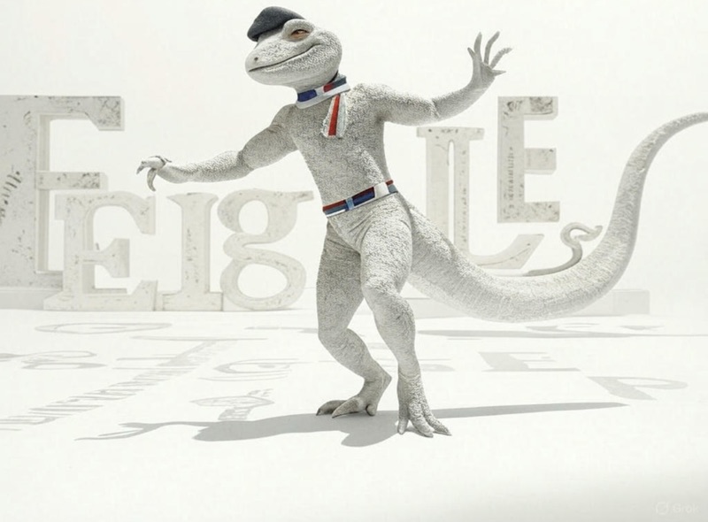 Cette installation minimaliste, sans ancrage spatial ni galerie définie, propose une mise en scène blanche, suspendue dans une temporalité clinique. Au centre, une figure humanoïde aux traits de lézard, façonnée en argile brute et blanchie, incarne la tension entre instinct primaire et fantasme républicain d’universalité.