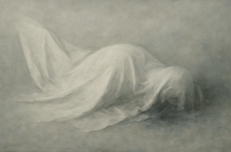 Par une esthétique minimaliste et désaturée, l’image cherche à matérialiser une forme d’effondrement sans fracas, à la fois politique et métaphysique, une disparition qui ne sait pas qu’elle en est une. Le drapé évoque à la fois le deuil et le déni, la dignité figée d’un pouvoir vidé de sens.